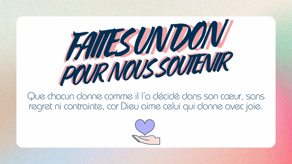 Votre don permet de soutenir des projets qui aident les jeunes à grandir dans leur relation avec Dieu et à trouver leur place dans l’Église. Concrètement, votre générosité rend possible :